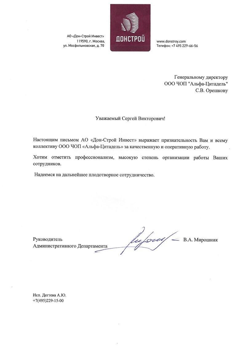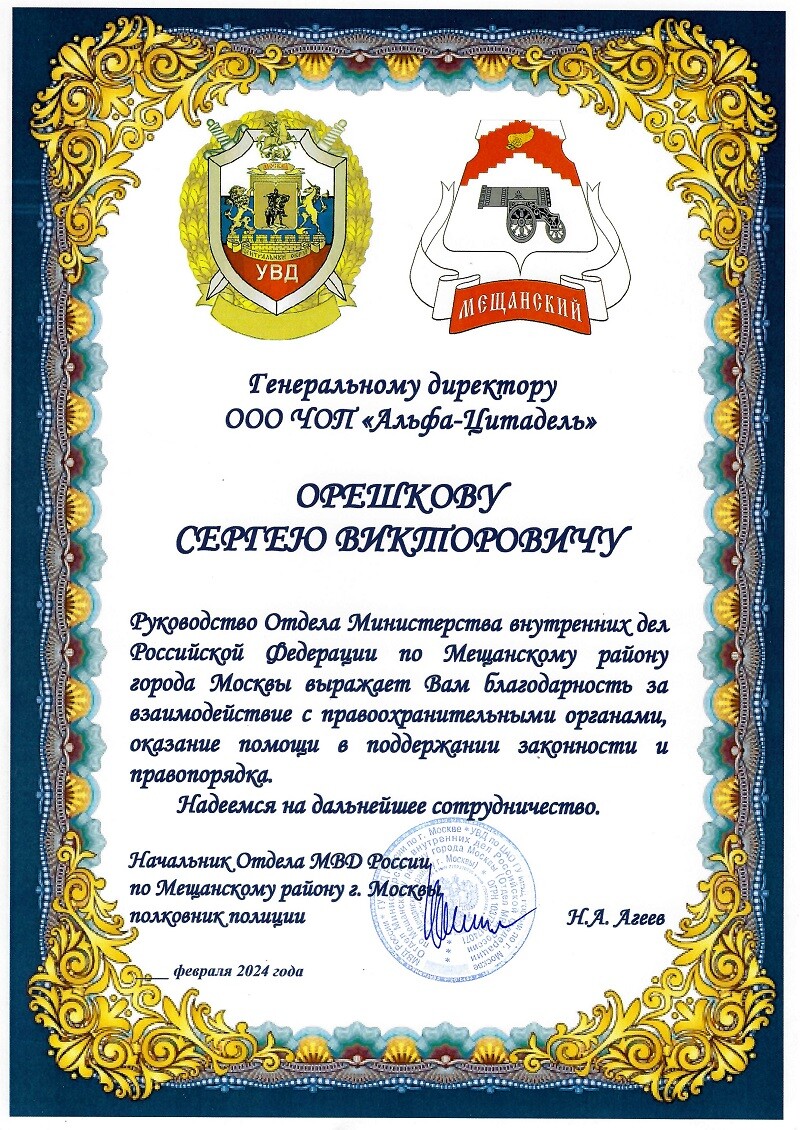 ООО ЧОП "Альфа-Цитадель" вот уже более 25-ти лет осуществляет свою деятельность на рынке охранных услуг. Наше предприятие, как и другие ЧОПы, носящие аббревиатуру "Альфа", входит в Международную ассоциацию ветеранов подразделения антитеррора "Альфа". Во главе ООО ЧОП "Альфа-Цитадель" стоят специалисты силовых ведомств России, имеющие богатый опыт в создании системы безопасности на объектах любого масштаба и различной сложности.